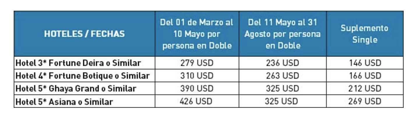 • Visado de entrada a emiratos árabes 85 USD por persona.